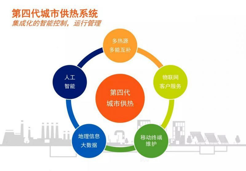 在第二代基礎上增加預制保溫管,供水溫度降到 100 度以下,采用工業化緊湊型的換熱站,同時引入計量系統和監控系統;熱源除了燃煤和天然氣以外,開始利用生物質燃料,工業余熱和垃圾焚燒技術。
